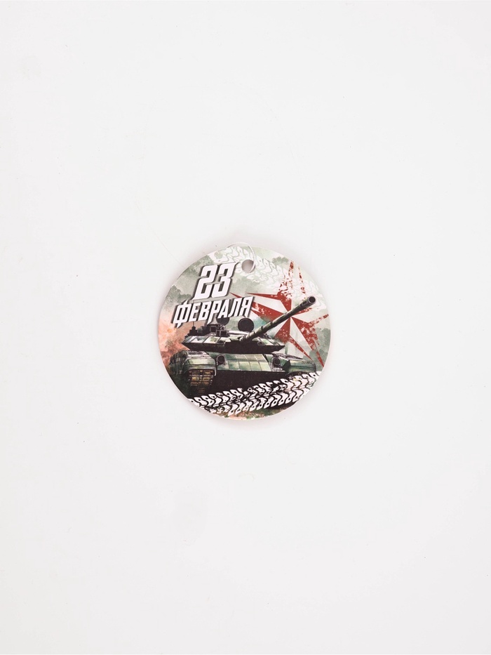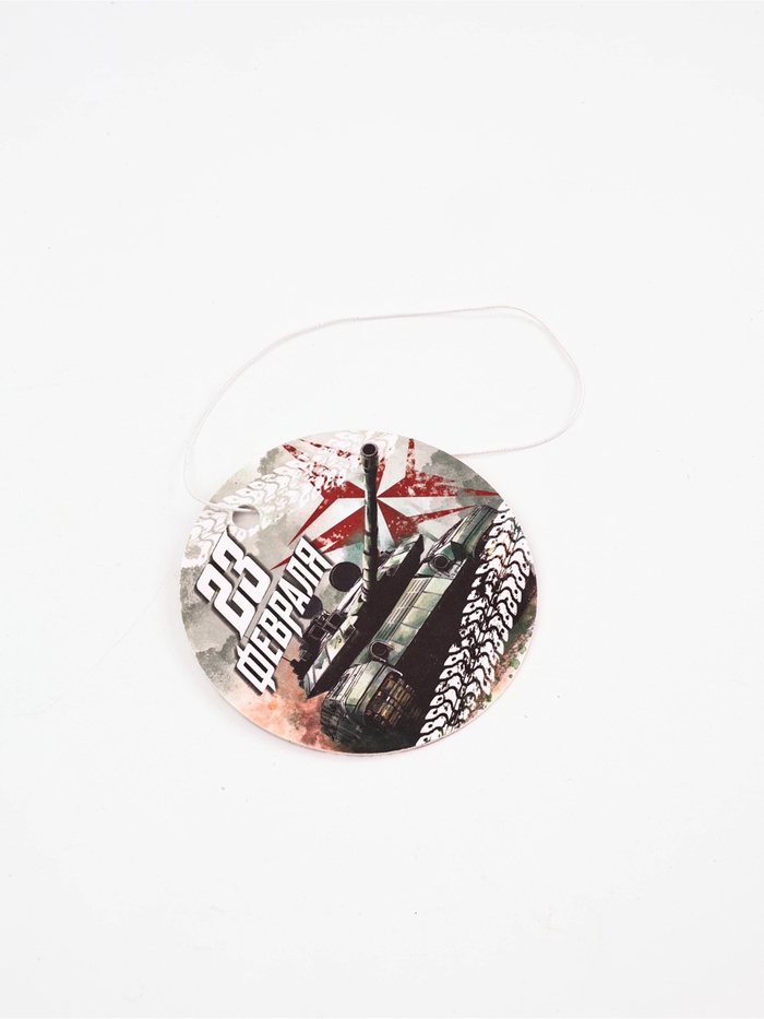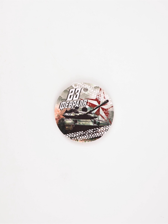Ароматизатор в машину бумажный круглый «23 Февраля», аромат чёрный лёд, 7.5×16.5 см