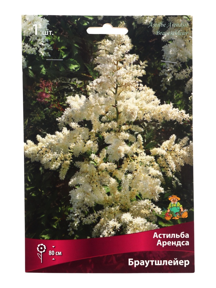 Астильба – оригинальное декоративное растение. Наиболее эффектны астильбы во время цветения. Их нежные соцветия не теряют привлекательности в течение 25-35 дней. Своими красками и формами эти растения оживляют светло-тенистые места в саду. Благодаря большому выбору сортов можно наблюдать сменяющие друг друга перистые метелки с июня по сентябрь. Соцветия могут быть пирамидальными, ромбическими, метельчатыми, но особенно изящны поникающие. Декоративность соцветий зависит от их плотности. Мелкие цветочки собраны в удлиненные метелки. Характер куста кустовидный, от прямого до раскидистого.Посадка: все астильбы влаголюбивы, зимостойки, устойчивы к вредителям и болезням. хорошо растут в светлом и полутенистом, прохладном месте, с влажным воздухом. Большинство сортов может расти в местах с довольно высокими грунтовыми водами и переносит даже застой воды. Почвы предпочитает хорошо удобренные. Важно, чтобы в корнеобитаемом слое почвы хватало фосфора и калия. Не переносит мест с сухим воздухом. Очень восприимчива к жаре!Уход: для поддержания декоративности растений следует ежегодно заботится об удобрении. Подкармливают астильбы сначала весной (азотные удобрения), потом сразу после цветения или осенью (калием и фосфором- 20-25 г на одно растение). На одном месте могут расти долго, до 15-20 лет.Использование: астильбы — прекрасные растения для озеленения. Их можно высаживать моногруппами вблизи кустарников. А одиночные вкрапления этих растений выглядят особенно элегантно среди посадок декоративных хвойных. Лучше всего чувствуют себя у водоемов или во влажных полутенистых местах. Браутшлейер - растение высотой 80 см. Соцветие рыхлое, поникающее, снежно-белое, длиной 30 см. Зацветает в первой половине июля.