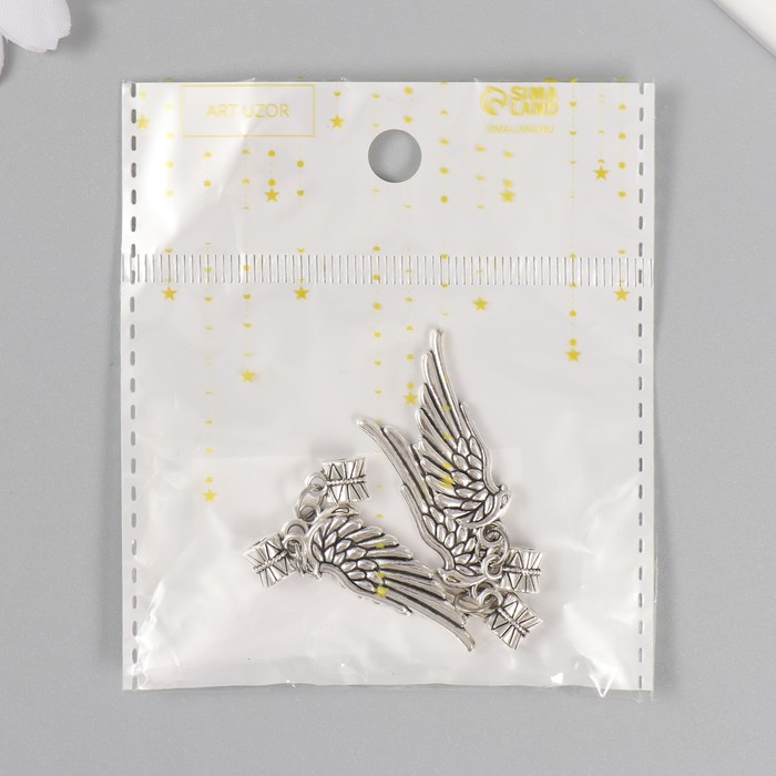 Бейл с подвеской металл для творчества "Крыло" серебро 4,3 см