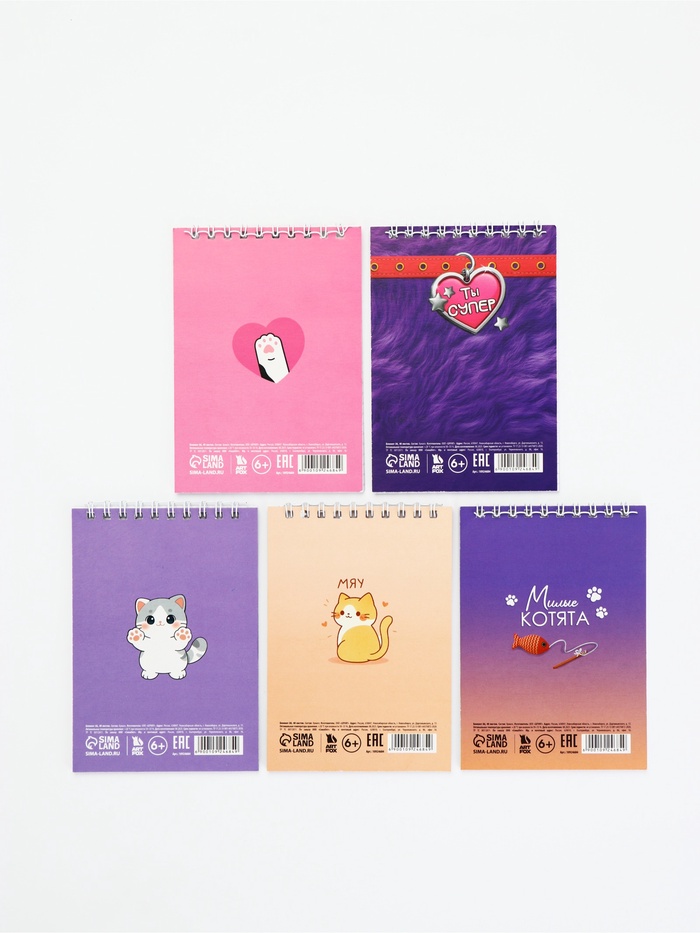 Блокнот А6, 40 л. На гребне. МИКС "Котики"