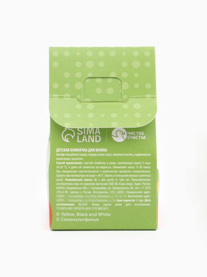 Бомбочка для ванны детская 40 г, аромат апельсин, в коробке, Чебурашка
