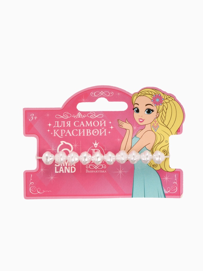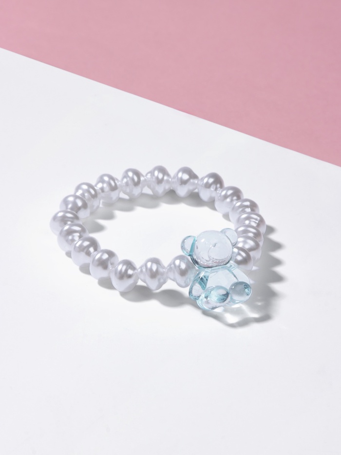 Браслет детский «Выбражулька. Жемчуг и Мармеладный мишка», d=6 см, белый с голубым