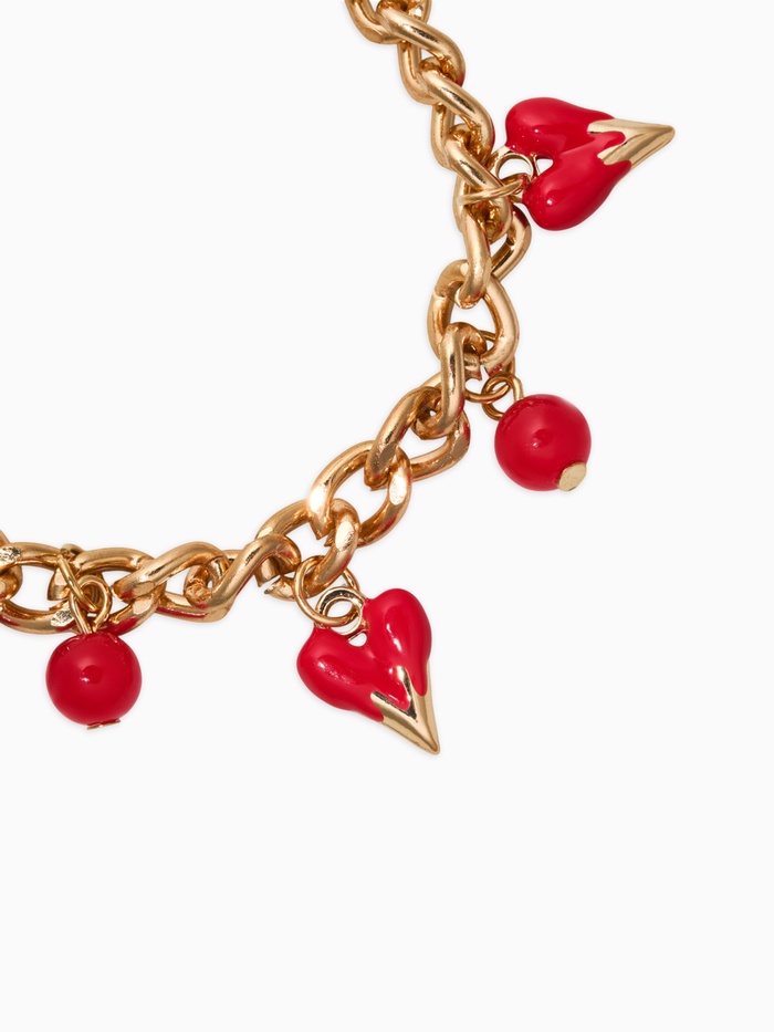 Погрузитесь в атмосферу нежности и любви с этим изящным браслетом, который словно создан для тех, кто ценит искренние эмоции и эстетическую гармонию. Его насыщенный красный цвет и фурнитура золотого цвета делают его не просто украшением, а настоящим выражением индивидуальности и чувства стиля.