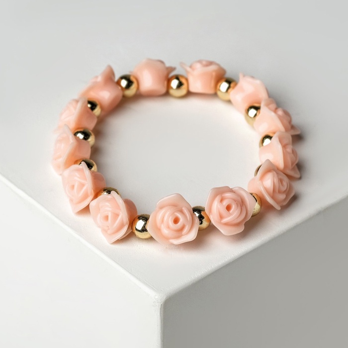 Браслет из пластика с бусинами в виде розы – это яркое и стильное украшение, которое добавит романтический акцент в ваш образ. Маленькие круглые бусины золотого цвета прекрасно дополняют композицию, придавая браслету элегантность и утонченность. С диаметром 8 см и на резинке, браслет удобно тянется, обеспечивая комфортную посадку на запястье.