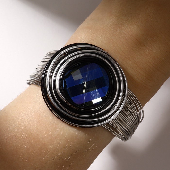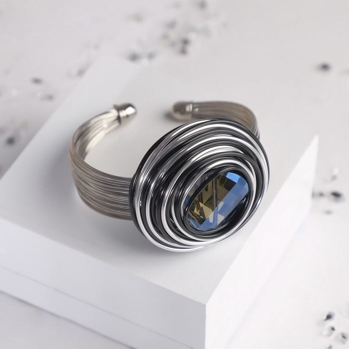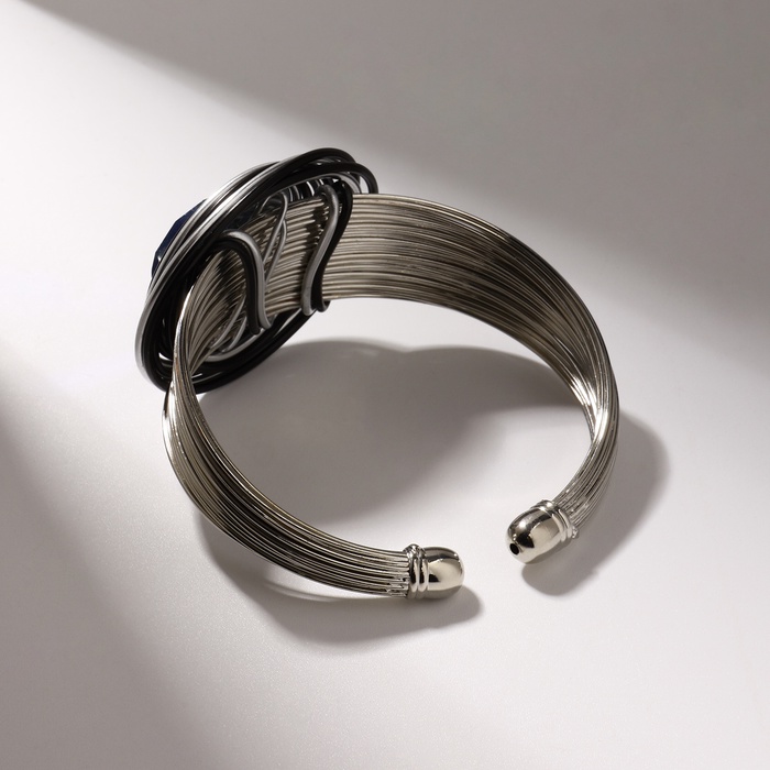 Браслет со стразами «Валькирия» камень в металле, цвет синий в чернёном серебре, безразмерное, d=6,5 см