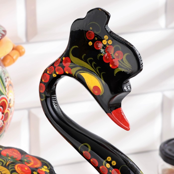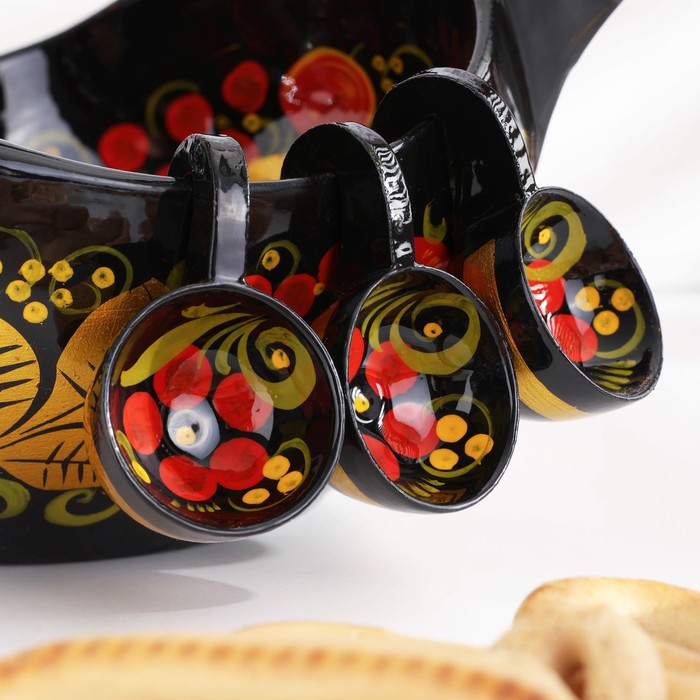 Традиционные элементы Хохломы — ягоды рябины и земляники, цветы и листья, птицы, рыбы и звери.