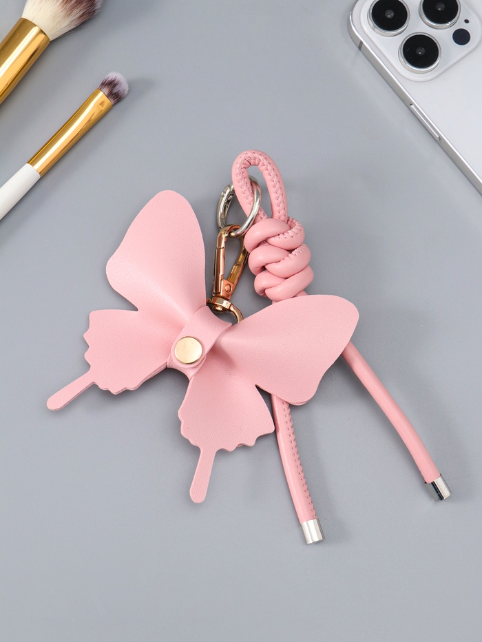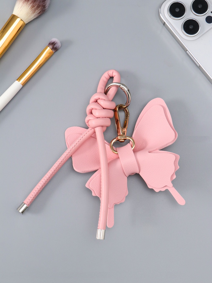 Этот розовый брелок-карабин — больше, чем просто держатель для ключей. Он создан, чтобы стать ярким акцентом на вашей сумке или рюкзаке, личным талисманом, который всегда с вами. Изящная форма бабочки с узелком говорит о лёгкости и свободе, а надёжная застёжка гарантирует, что самое важное не потеряется.