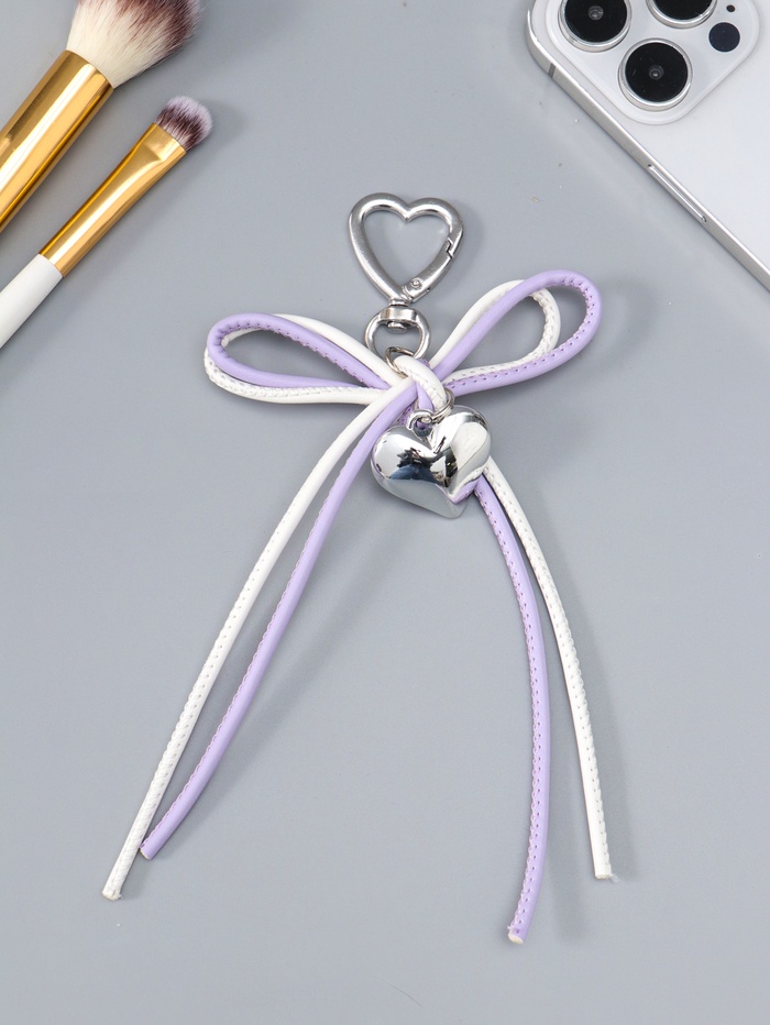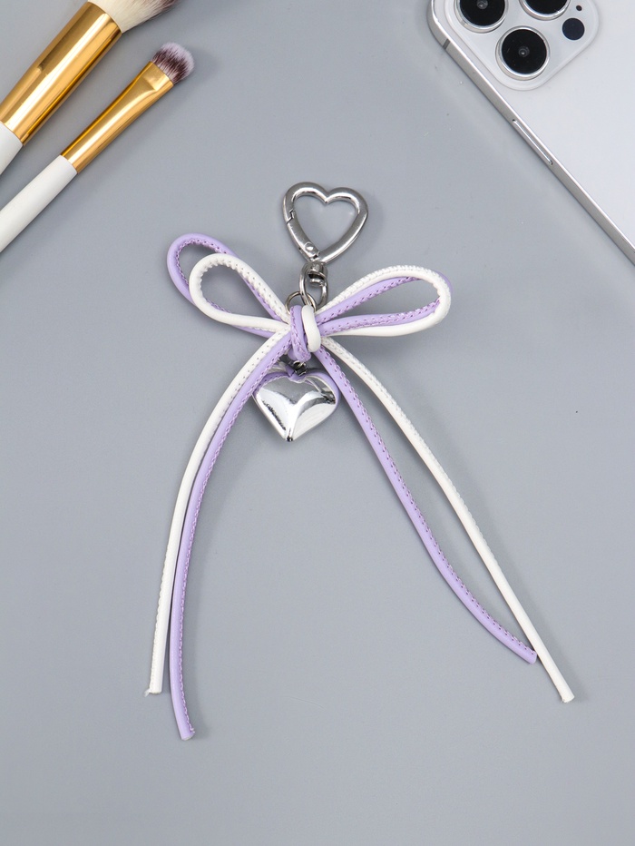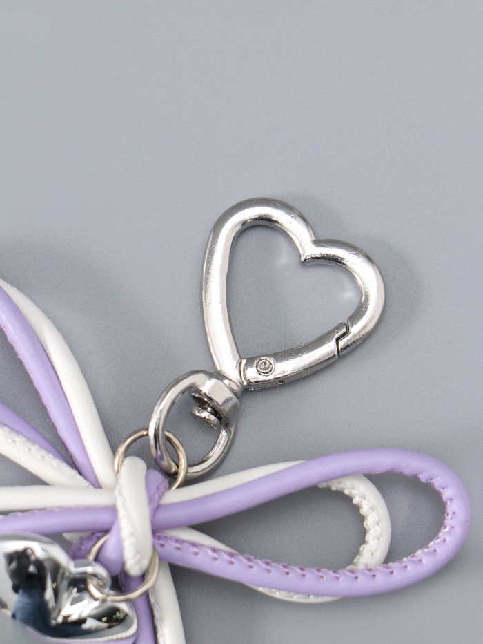 Брелок для ключей на карабине «Двойной бант с сердцем», на сумку, рюкзак, бело-сиреневый, 14×9×1.5 см