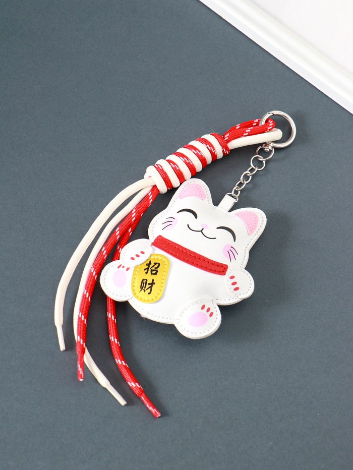 Брелок для ключей на карабине «Манэки-нэко», с узлом, кожзам, текстиль, 27×8×3 см