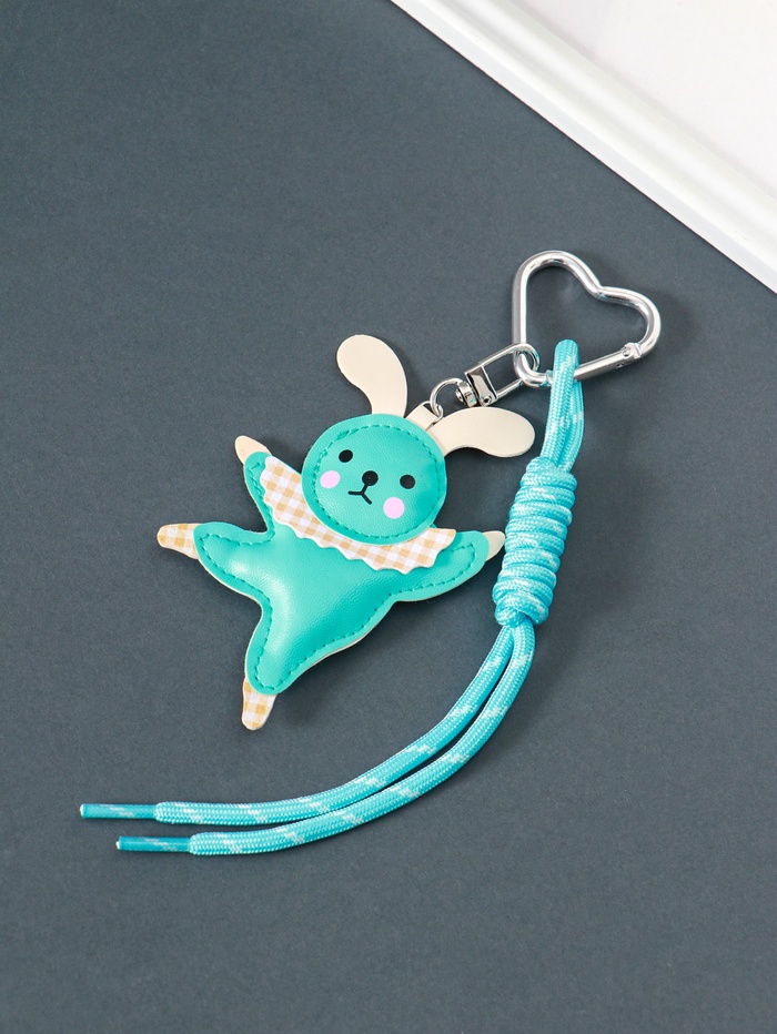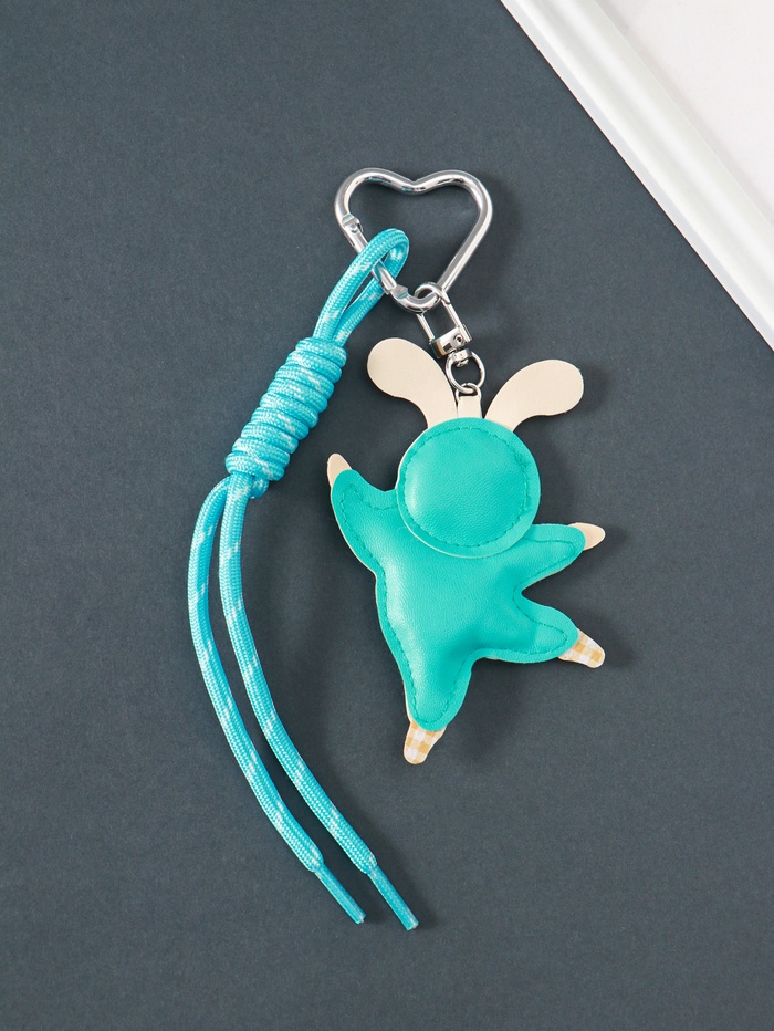 Брелок для ключей на карабине «Танцующий зайчик», с узлом, голубой, кожзам, текстиль, 24×7.5×1 см