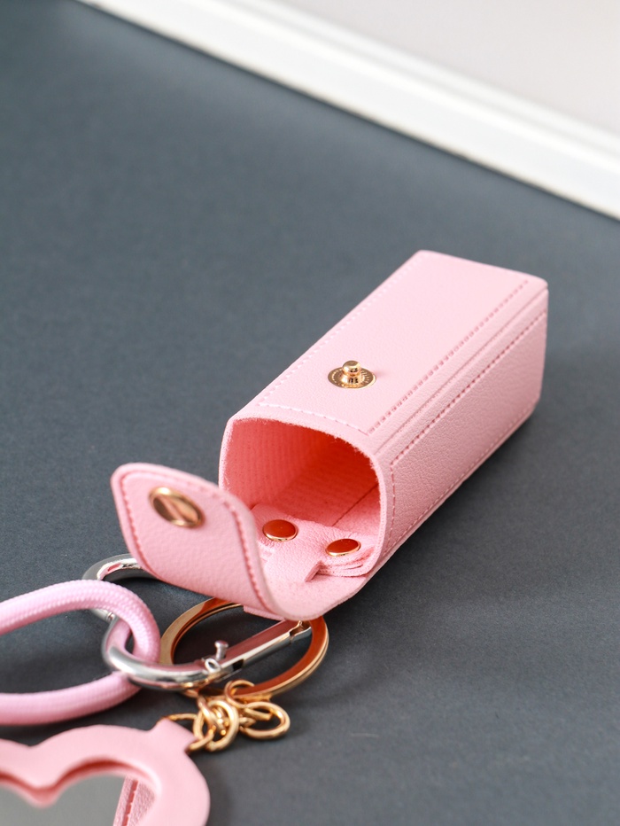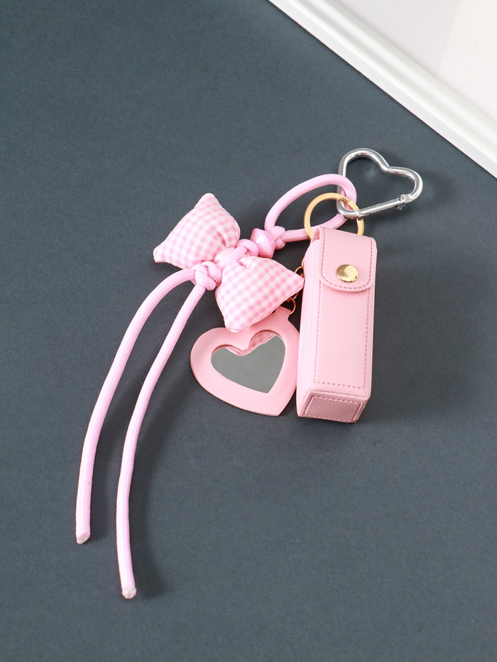 Брелок для ключей на кольце с карабином, с зеркалом «Для помады. Бант», кожзам, розовый, 23×3×3.5 см