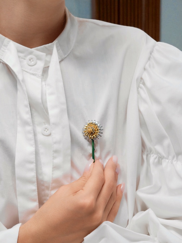 Проверьте свою связь с природой и вспомните беззаботное детство с очаровательной брошью в виде одуванчика. Этот нежный цветок, раскрашенный в мягкие солнечные оттенки, способен преобразить самый обычный наряд и привлечь массу комплиментов.