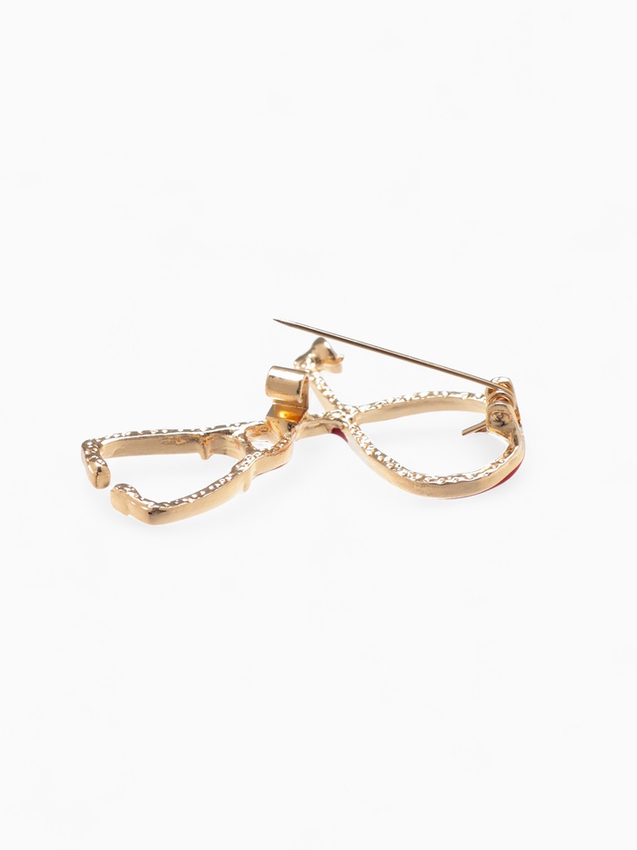 - Материалы и оформление: металлическая основа с золотистым покрытием сочетается с насыщенной красной эмалью, создавая контрастный и заметный образ.
