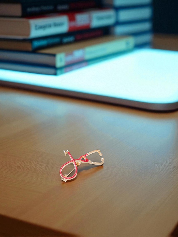 Знак признания и уважения в мире медицины. Яркая брошь с изображением стетоскопа в красно-золотом исполнении станет символичным аксессуаром для врачей и медицинских работников, подчёркивая их профессиональную принадлежность и внимание к деталям.