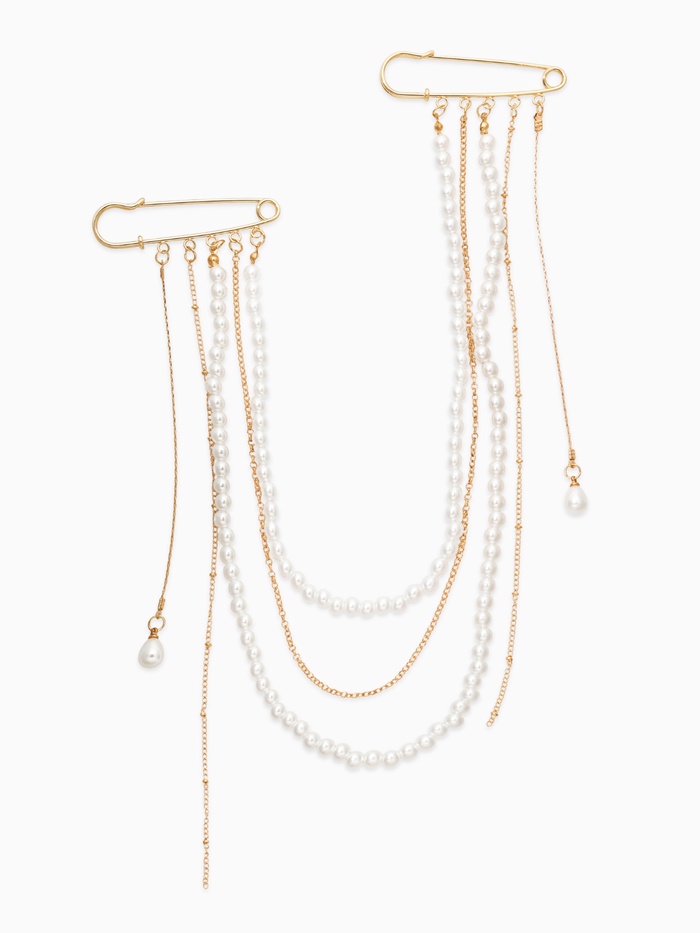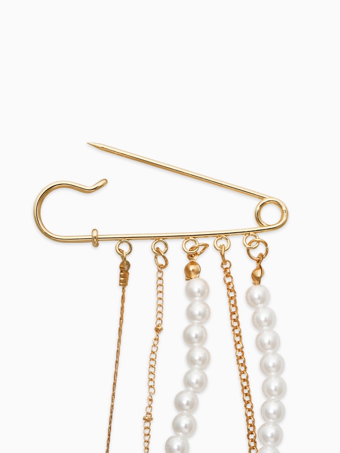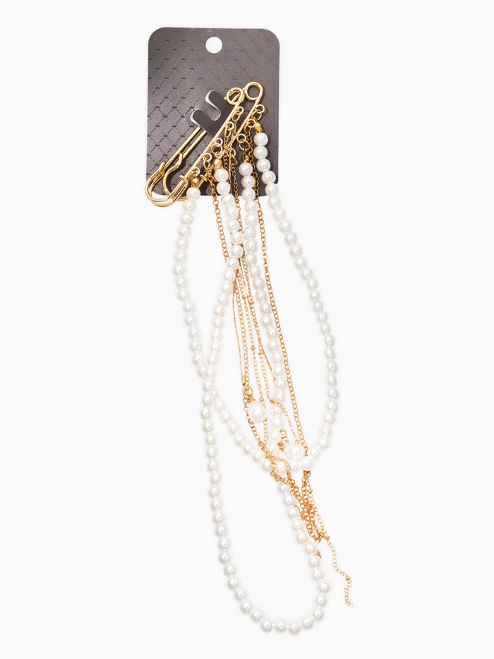 Попробуйте новый уровень стиля с булавками "жемчужный аксельбант" — прекрасное дополнение к официальному наряду или вечернему платью. Булавки выполнены в классическом белом цвете с золотистыми элементами, создавая роскошный и элегантный вид.