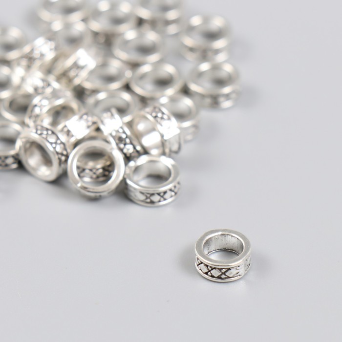Бусина для творчества металл «Колечко», серебро, 0.3×0.8 см