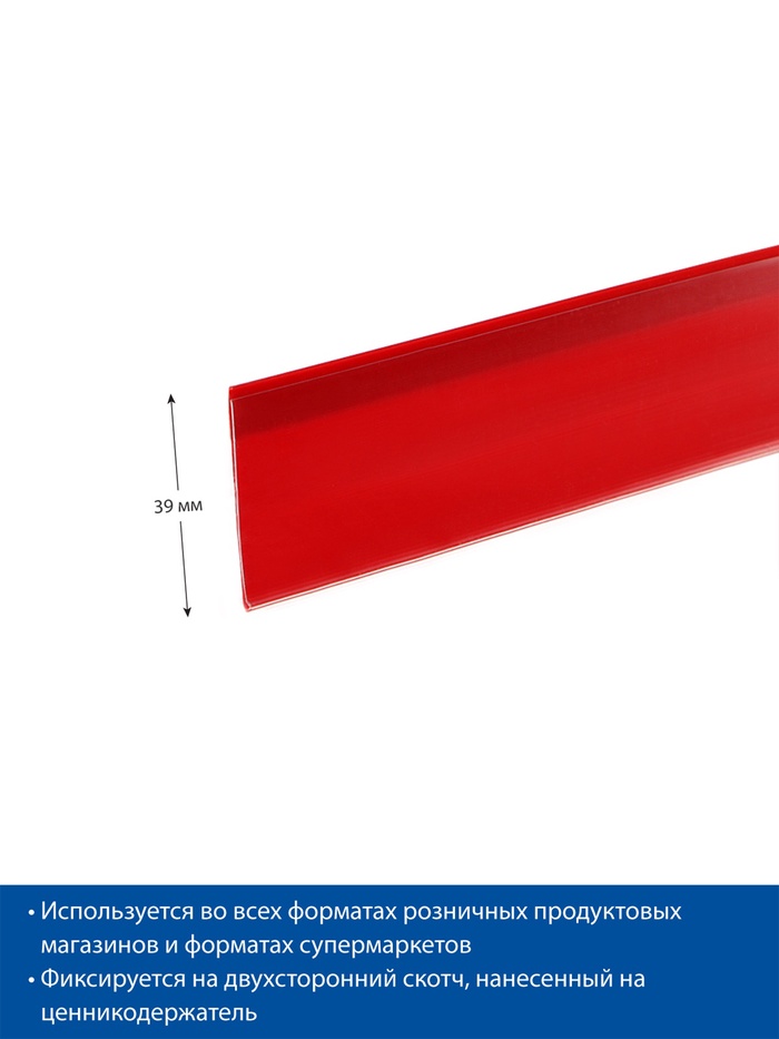 Ценникодержатель полочный самоклеящийся DBR — идеальное решение для организации и оформления ценников в вашем магазине или на торговой площадке. Этот практичный аксессуар легко крепится на полках и других поверхностях, обеспечивая надёжную фиксацию ценников и информации о товарах. Самоклеящийся дизайн упрощает установку и позволяет быстро обновлять информацию без лишних усилий. Ценникодержатель DBR помогает создать аккуратное и привлекательное пространство, что способствует привлечению внимания покупателей и улучшению их покупательского опыта. Используйте этот аксессуар для повышения эффективности вашего торгового оформления.