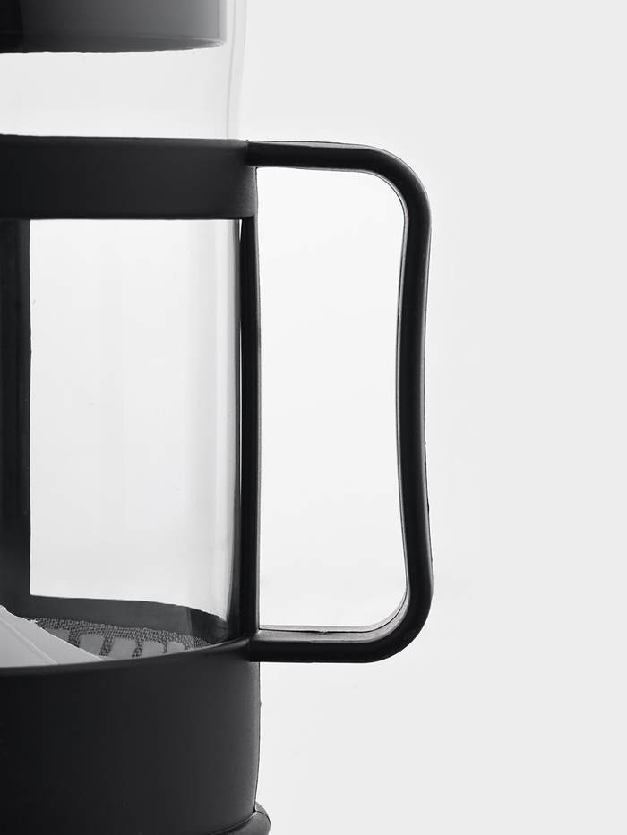 Стеклянный френч-пресс хорошо держит тепло, раскрывает вкус любимых напитков. Стальной поршень не вступает в реакцию с жидкостью, не наделяет ее металлическим привкусом.Принцип работы френч-пресса прост:
