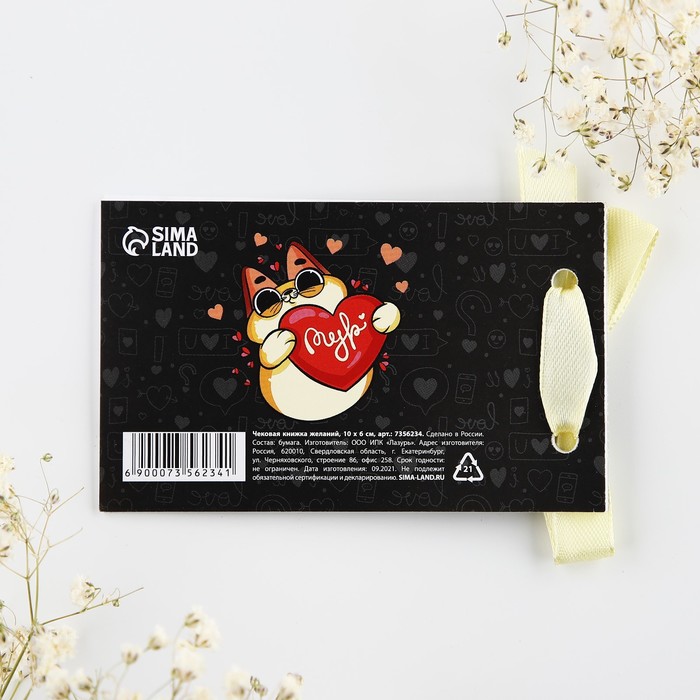 Чековая книжка желаний «Для любимого котика» , 10 х 6 см