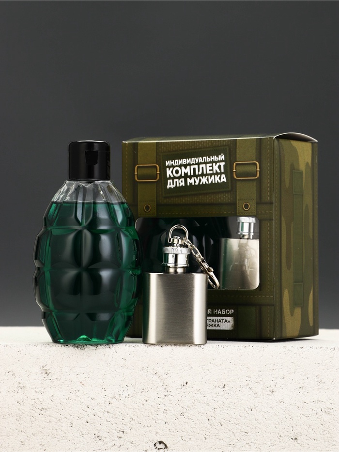 Чистое счастье Мужской набор гель для душа Граната и брелок фляжка_зеленый
