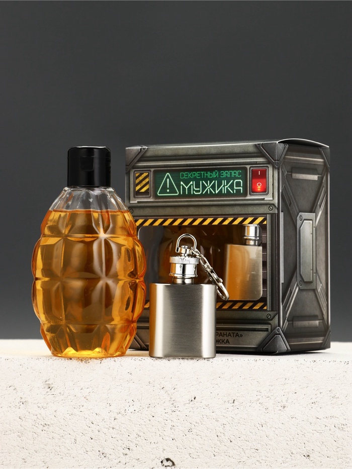 Чистое счастье Мужской набор гель для душа Граната и брелок фляжка_желтый