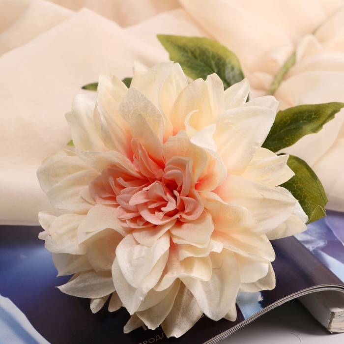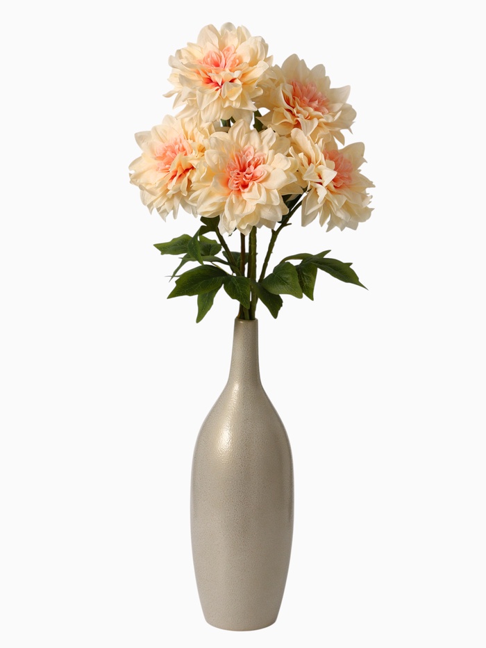 - Кремовое очарование: нежные кремовые соцветия искусственных георгинов смотрятся изысканно и натурально, оживляя пространство. Они подходят для создания как классических, так и современных композиций.