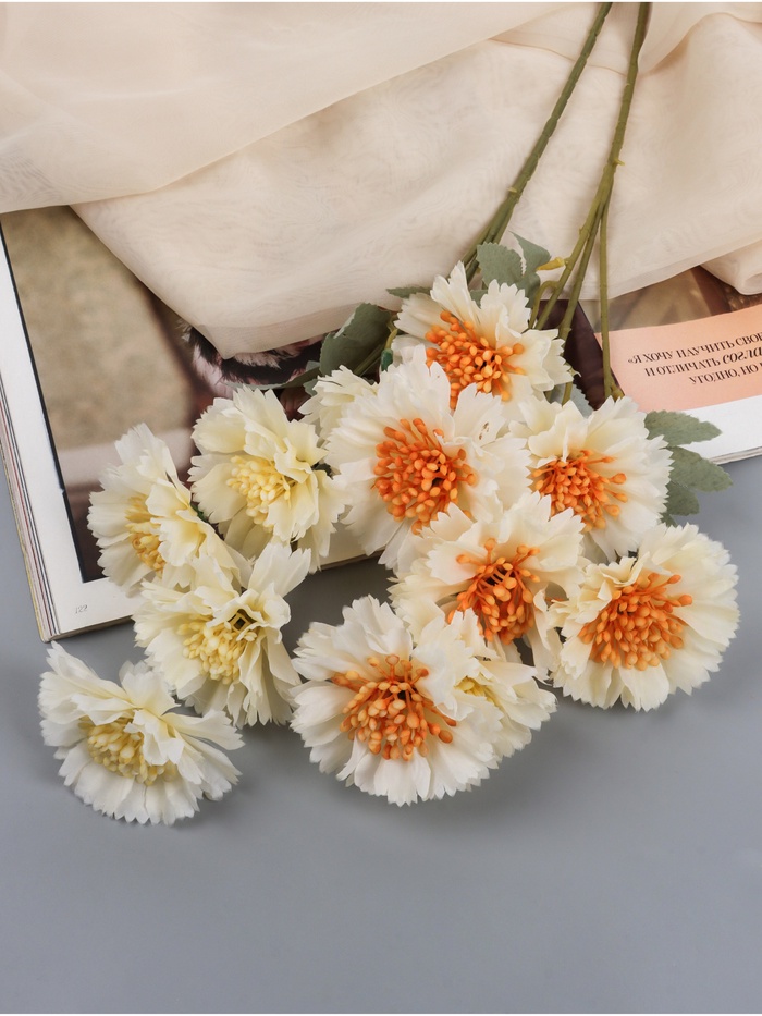 Цветы искусственные «Гвоздика каспар галант», 58×7 см, белые