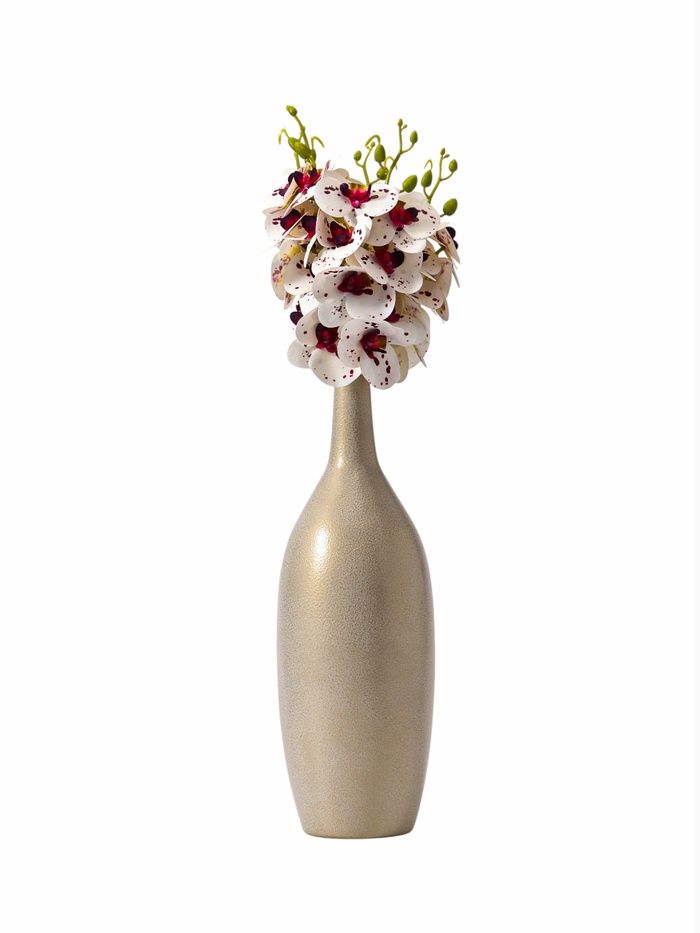 - Готовое стильное решение: Орхидея поставляется в собранном виде. Вам нужно лишь выбрать для нее подходящую вазу или кашпо. Прочный пластиковый стебель устойчив, его можно слегка изогнуть для более естественной постановки.