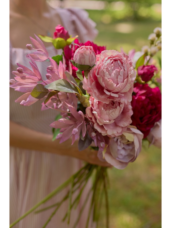 - Высокое качество материалов: стебель выполнен из прочного пластика, а текстильные лепестки придают реалистичность, делая их практически неотличимыми от живых пионов. Они сохраняют свою форму и красоту независимо от времени года.