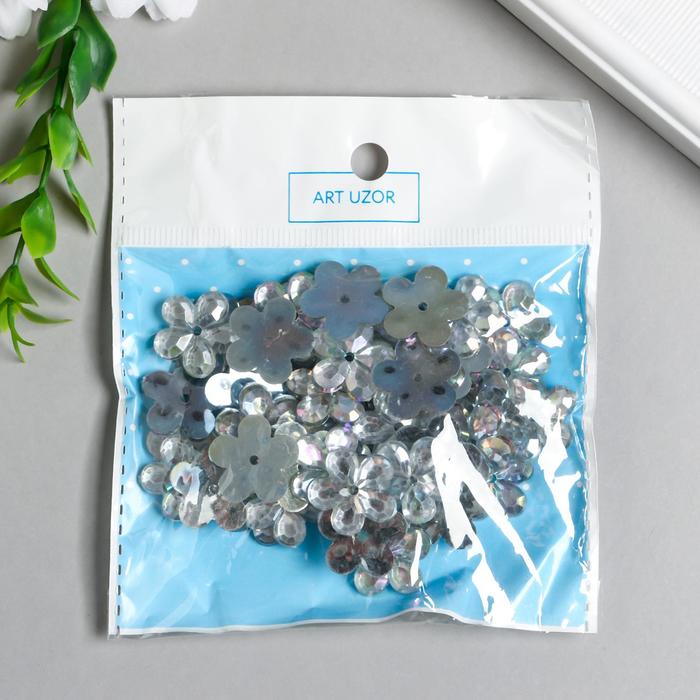 Декор для творчества пластик 1 прокол "Стразы цветок. Прозрачный" набор 50 шт 1,8х1,8 см