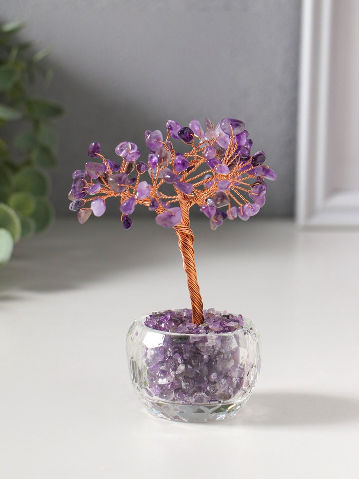 - Листья дерева выполнены из натуральных сиреневых камней, каждый закреплён вручную.