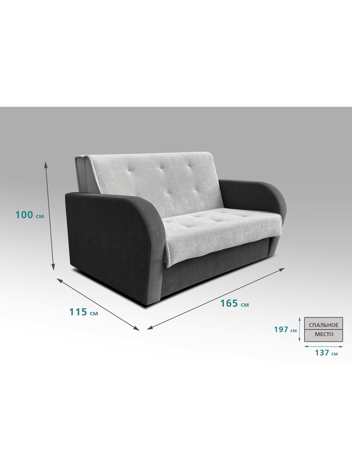 Диван "РЭЙ 1400" Ткань Вивальди 14 светло-серый/Вивальди 34 графит