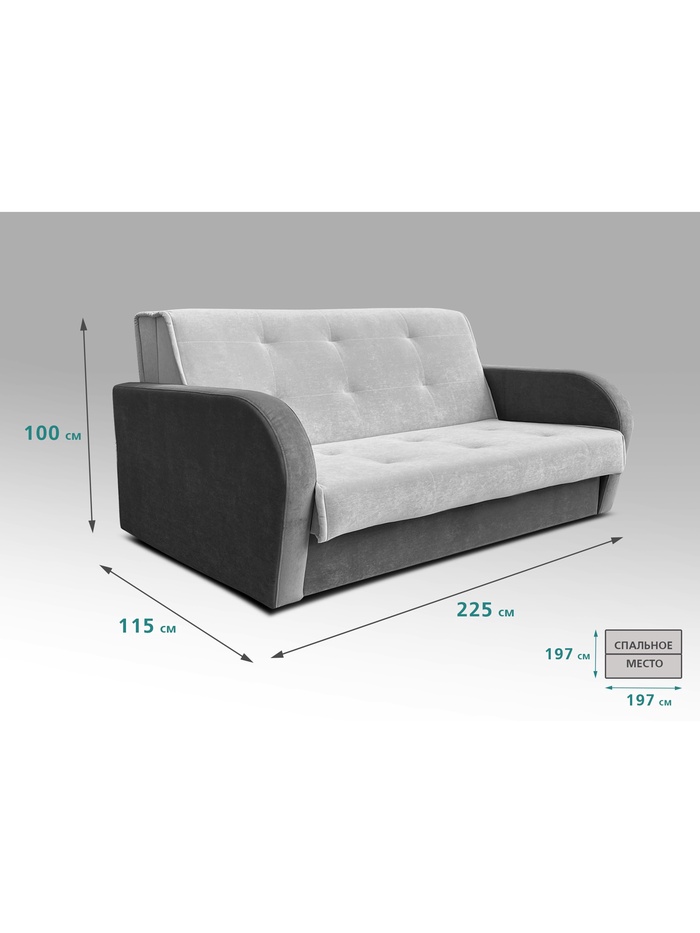 Диван "РЭЙ 2000" Ткань Вивальди 14 светло-серый/Вивальди 34 графит