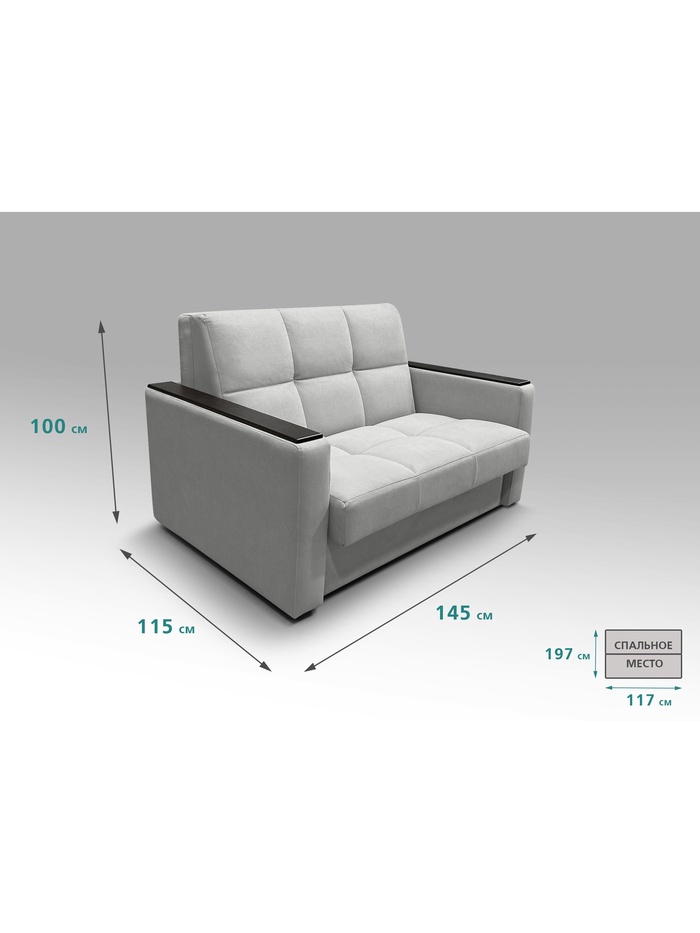 Диван "РЭЙ КЛЕТК 1200" с МДФ Ткань Вивальди 14 светло-серый