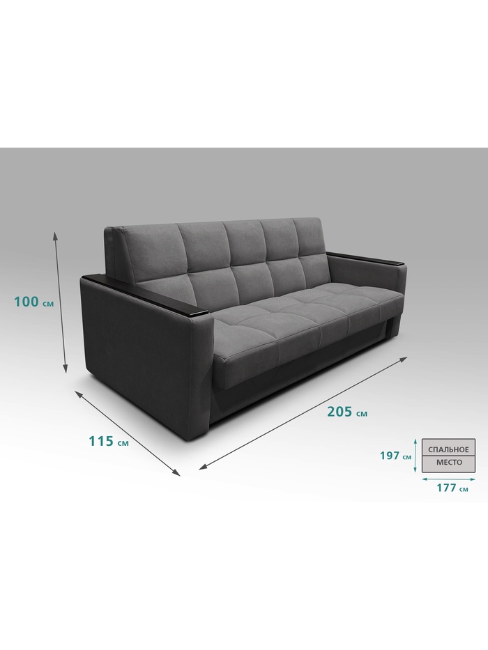 Диван "РЭЙ КЛЕТКА 1800" с МДФ Ткань Вивальди 34 графит