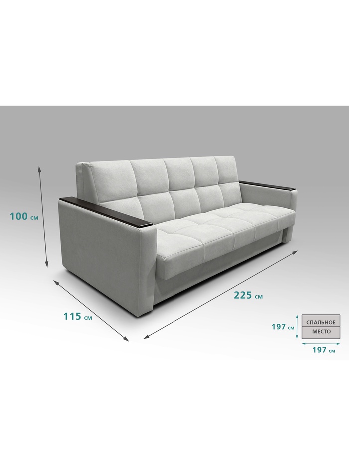 Диван "РЭЙ КЛЕТКА 2000" с МДФ Ткань Вивальди 14 светло-серый