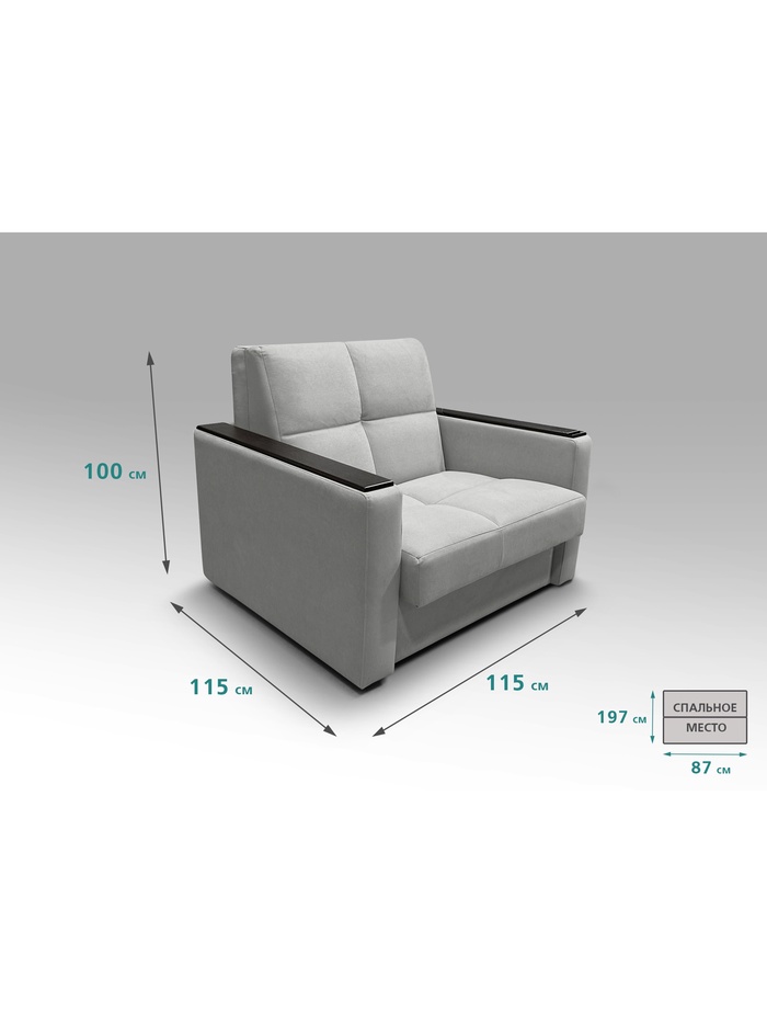 Диван "РЭЙ КЛЕТКА 900" с МДФ Ткань Вивальди 14 светло-серый