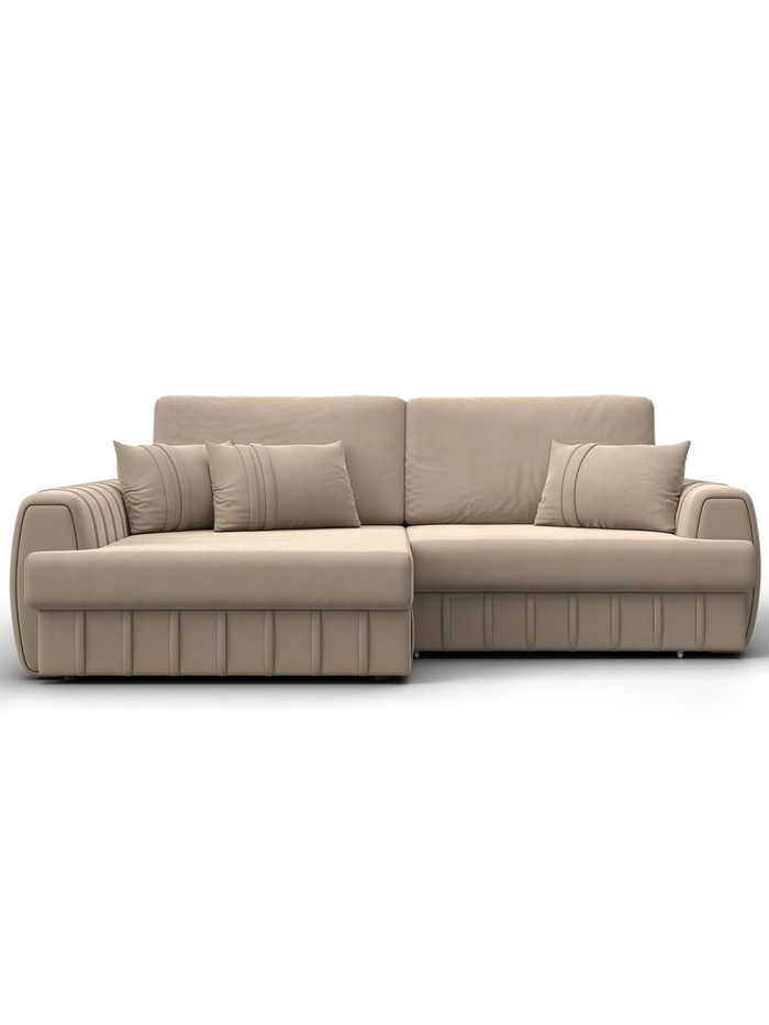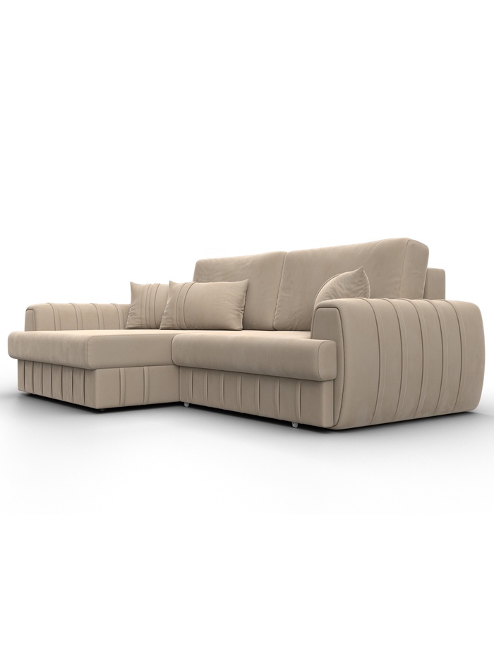 Диван угловой Лига-057 НПБ угол левый велюр SEVEN 729, бежевый