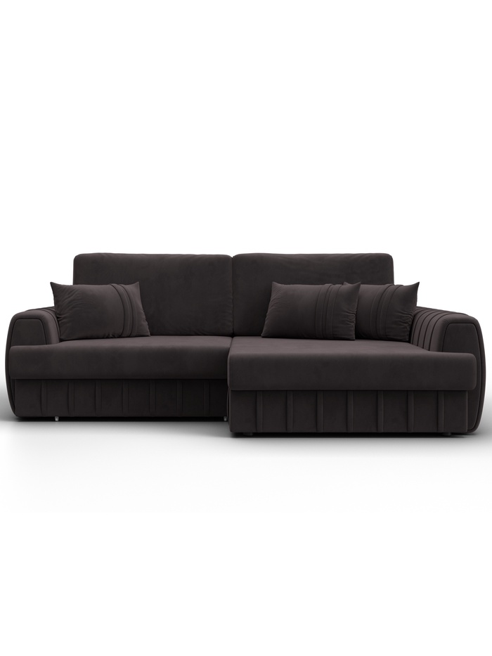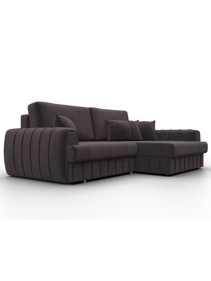 Диван угловой Лига-057 НПБ угол правый велюр SEVEN 727, коричневый