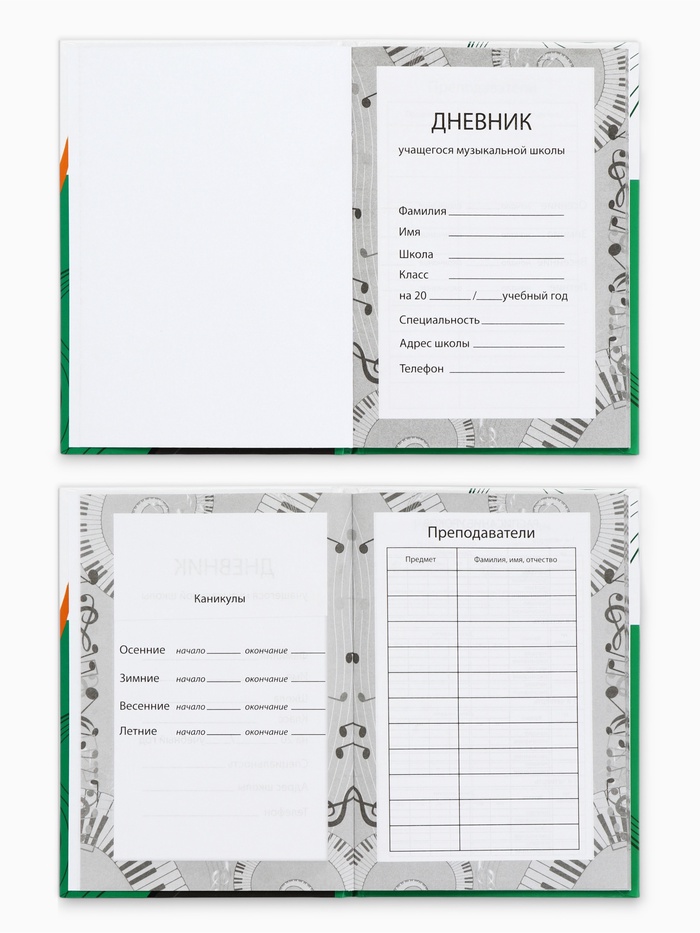 Дневник для музыкальной школы, в твердой обложке, 40 л. "Винил"