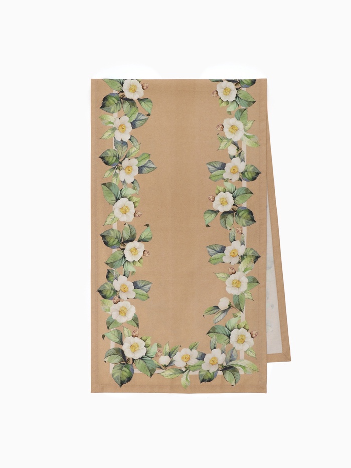 Эта бежевая дорожка из хлопка — элегантный акцент для обеденного стола. Её вытянутый прямоугольный формат идеально подходит для сервировки, создавая уютную и завершённую картину. Модель из коллекции Camellia с цветочным узором привносит в интерьер лёгкое весеннее настроение и ощущение праздника, делая каждый приём пищи особенным.
