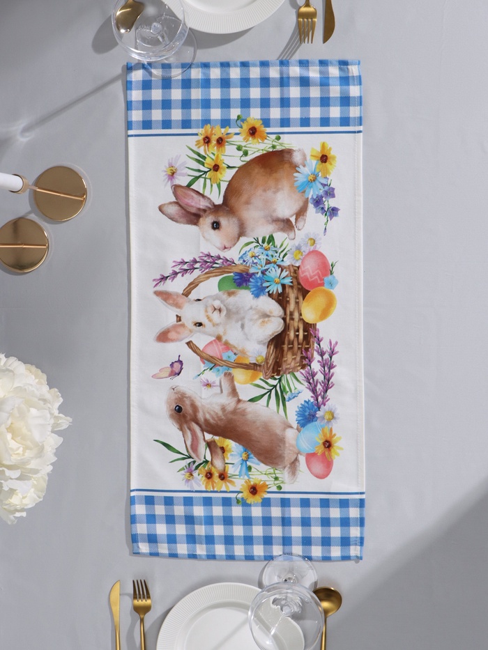 Дорожка добавляет завершающий акцент к пасхальной сервировке, защищая скатерть и задавая тон празднику. Гладкая хлопковая ткань безопасна для посуды и столовых приборов. Её можно использовать не только на Пасху, но и в течение всего года для создания весеннего настроения на кухне или в столовой. Это простой и элегантный способ сделать семейный обед по-настоящему праздничным.