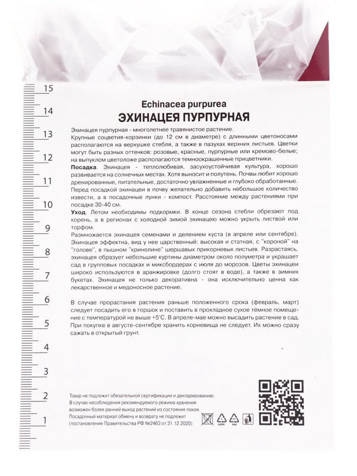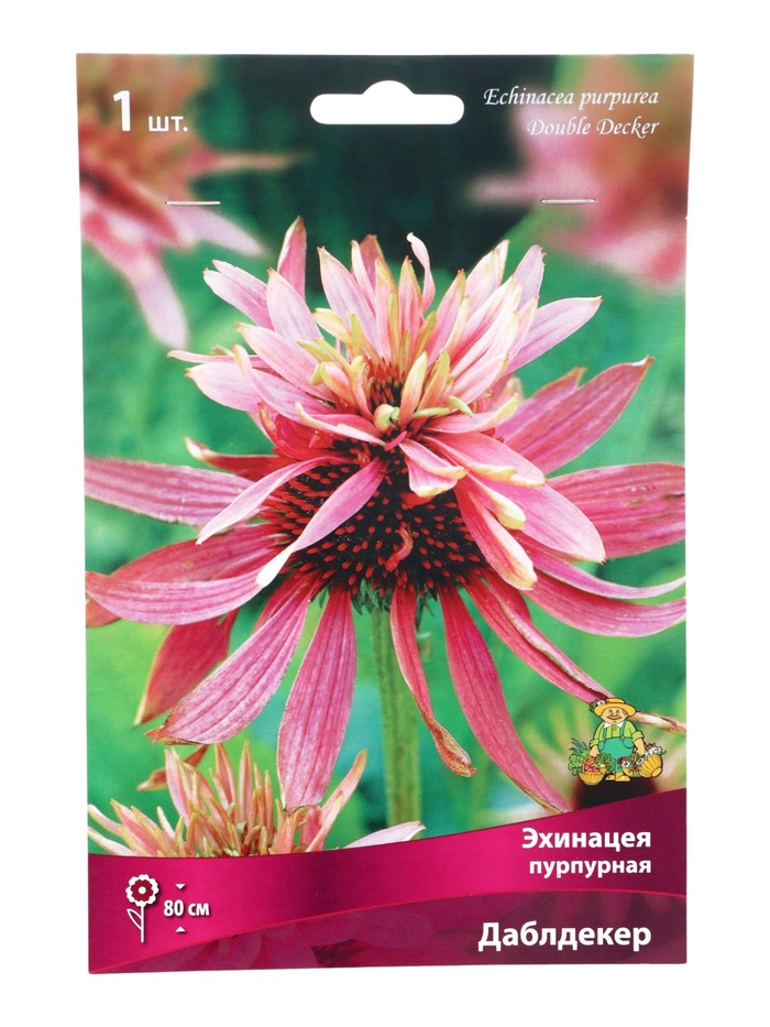 Саженцы и рассада пурпурной Эхинацеи Даблдекер (Echinacea purpurea) используются для выращивания выносливого растения, которое обладает сильными лечебными свойствами. Данный сорт многолетника имеет красноватые стебли, внизу которых располагаются продолговатые жесткие листки с шершавой поверхностью, а в верхней части – крупная корзинка с трубчатой темной серединкой и бело-розово-красными язычковыми цветками, махровость которых проявляется на второй год. Это светолюбивое растение предпочитает хорошо обработанные суховатые почвы.