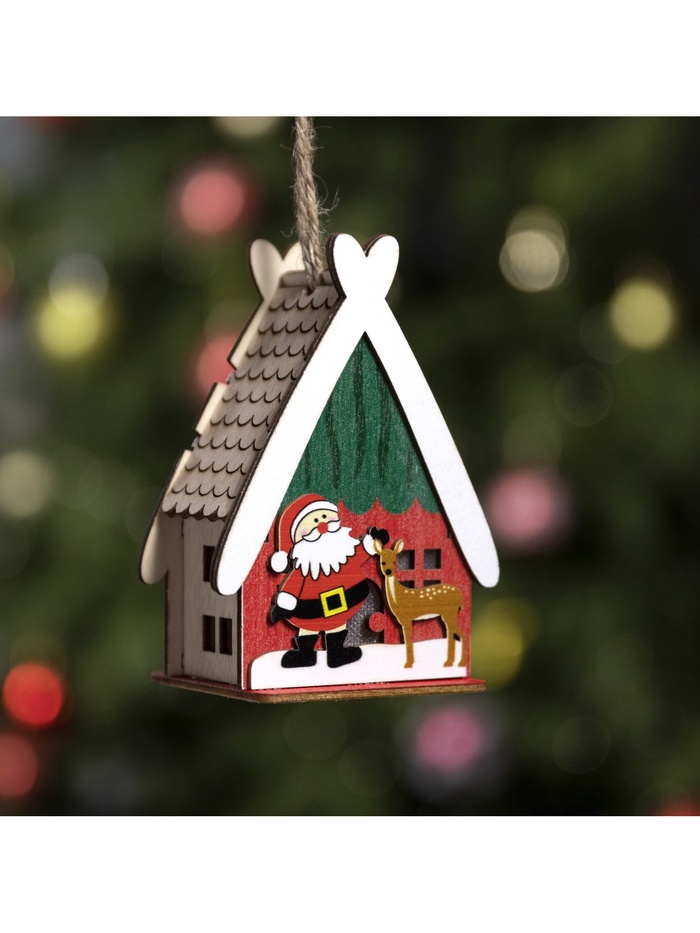 Деревянный домик с подсветкой - это очаровательное украшение для вашей новогодней ёлки. Создаст атмосферу праздника и добавит уюта в ваш дом.