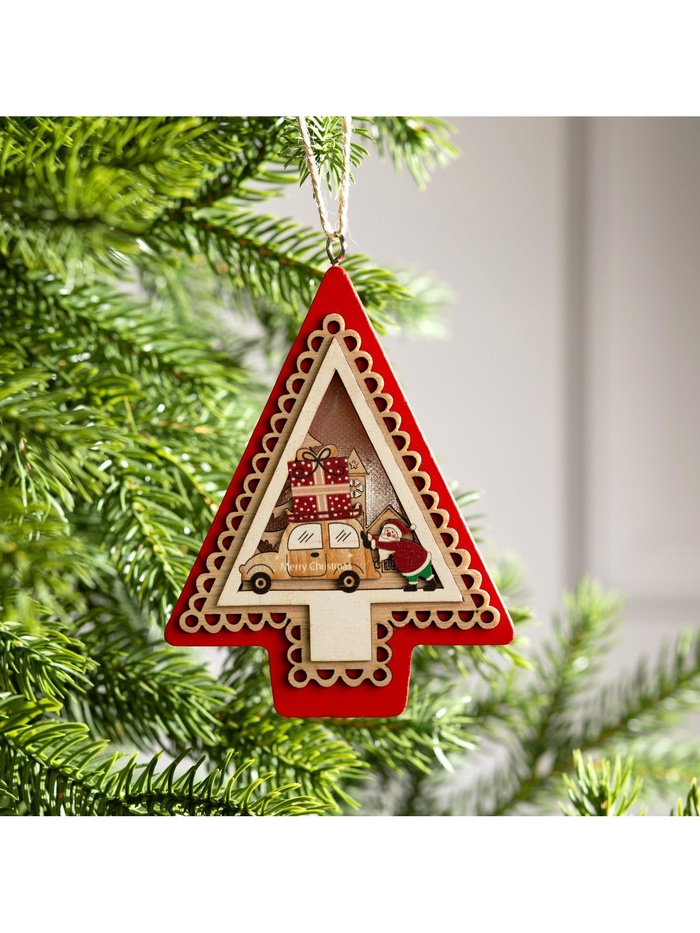 Ёлочная игрушка «Ёлка с Дедом Морозом и машиной», 12.5×9.5×1.5 см, от батареек, свечение тёплое белое