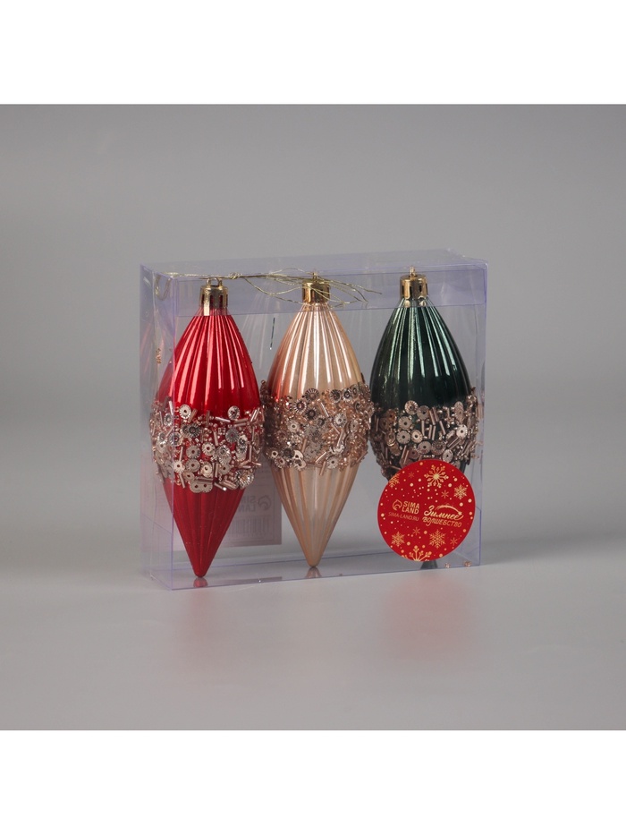 - Комплект — 3 украшения, достаточно для создания тонкого акцента на ёлке или в подарочной упаковке без давления на дизайн.