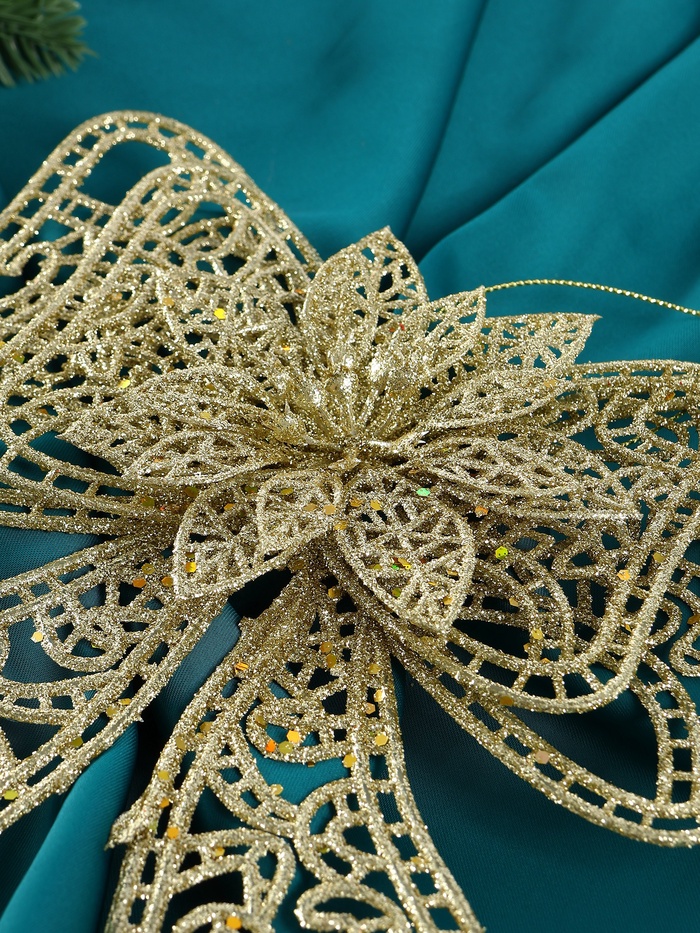 Превратите елку в сияющий шедевр – золотой резной бант с цветком в стиле барокко и ар-деко! Золотой новогодний бант – игрушка из прочного пластика, сочетающая пышность барокко, строгость классики и графичность ар-деко. Ее размер – 18×12,5 см, что делает акцент заметным, но не перегружает композицию.