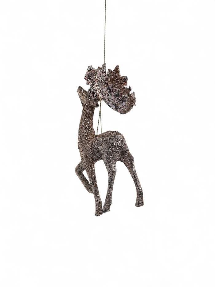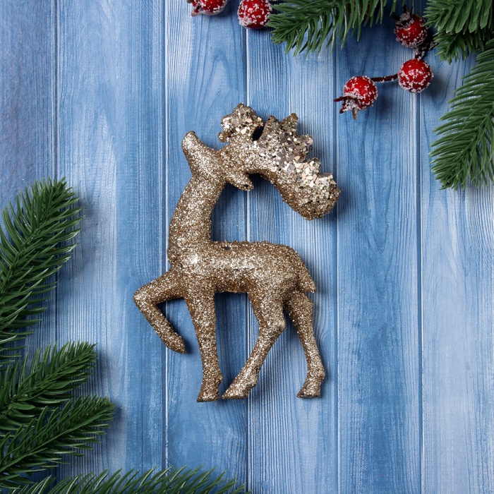 Золотистая новогодняя фигурка оленя из пластика станет выразительным акцентом праздничного оформления. Высота 13 см позволяет использовать украшение в качестве центрального элемента на ёлке или в зимних композициях, подчёркивая стиль ар-деко и барокко с современными фьюжн мотивами.
