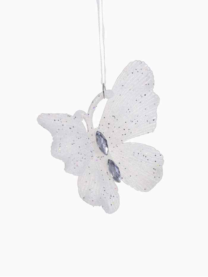Белая ёлочная бабочка из пластика размером 10,5×10 см объединяет классический и скандинавский стили с элементами ар-деко и датского дизайна. Однотонное исполнение подчёркивает элегантность и сдержанность, делая украшение гармоничной частью новогоднего декора.