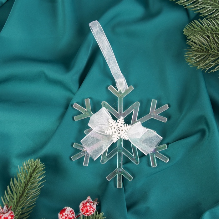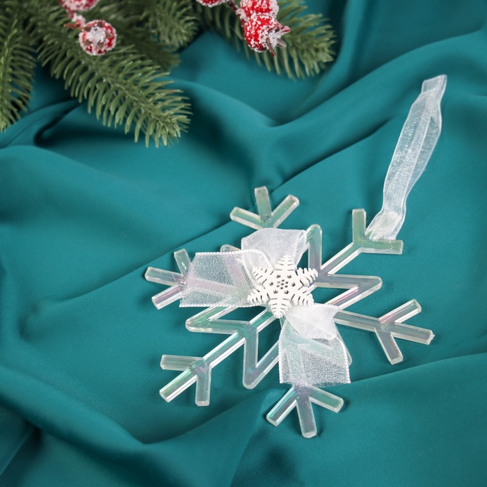 Прозрачная снежинка из пластика размером 12×10 см воплощает скандинавскую лаконичность и датскую утонченность. Резные детали создают зеркальный эффект, который подчёркивает зимнюю свежесть и добавляет глубину праздничному оформлению.